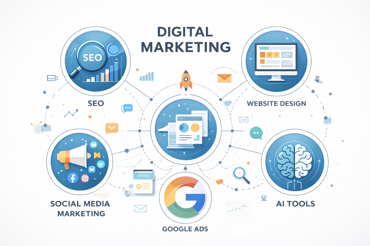 We are a team of skilled digital marketers, designers, and strategists who are passionate about helping businesses succeed online. Our team stays updated with the latest trends in SEO, social media marketing, Google algorithms, and AI tools to ensure our clients stay ahead of the competition.